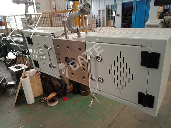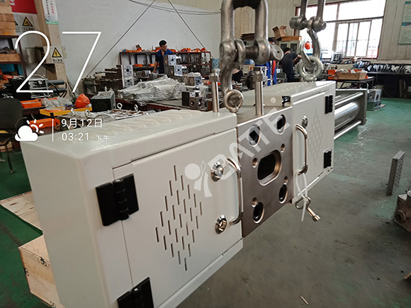 擠出機換網(wǎng)器為雙工作位替換工作,一慮網(wǎng)過濾,一慮網(wǎng)在換網(wǎng)器主體外備用。往復(fù)板板兩端有網(wǎng)塊保溫加熱裝置,用于過濾易結(jié)晶或易老化的塑料時,在更換濾網(wǎng)時應(yīng)取出網(wǎng)塊,清除出網(wǎng)孔中的塑料。單板式換網(wǎng)器在更換慮網(wǎng)時有蓄能器增加動力,因此更換濾網(wǎng)網(wǎng)的速度快、動力大,在更換慮網(wǎng)時嚴(yán)禁網(wǎng)塊或濾網(wǎng)毛邊漏出往復(fù)板外面,更不允許用手觸摸。